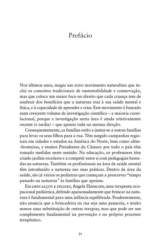 Retirámos os carrosséis e os sobe -e -desce para manter as crianças seguras. À medida que a vida das crianças se torna mais “virtual”, através da TV, do smartphone e dos ecrãs de computador, os professores estão a observar um decréscimo na capacidade de concentração, e os médicos, a registar um aumento alarmante de transtornos sensoriais e emocionais. Por isso, como pode assegurar que o seu filho está a desenvolver completamente o corpo, a mente e todos os sentidos? Em Descalços e Felizes, Angela Hanscom – terapeuta ocupacional pediátrica e fundadora de TimberNook – expõe a epidemia silenciosa que afeta as crianças modernas, explica as razões por que o movimento livre e a brincadeira ao ar livre são cruciais para o desenvolvimento físico e cognitivo do seu filho, e ainda oferece estratégias divertidas e interessantes para garantir que as crianças se tornem adultos saudáveis, equilibrados e resilientes.