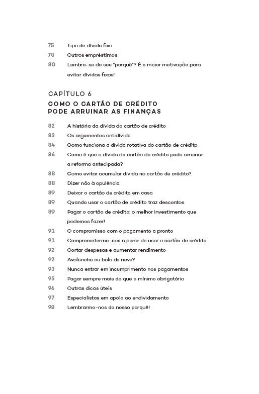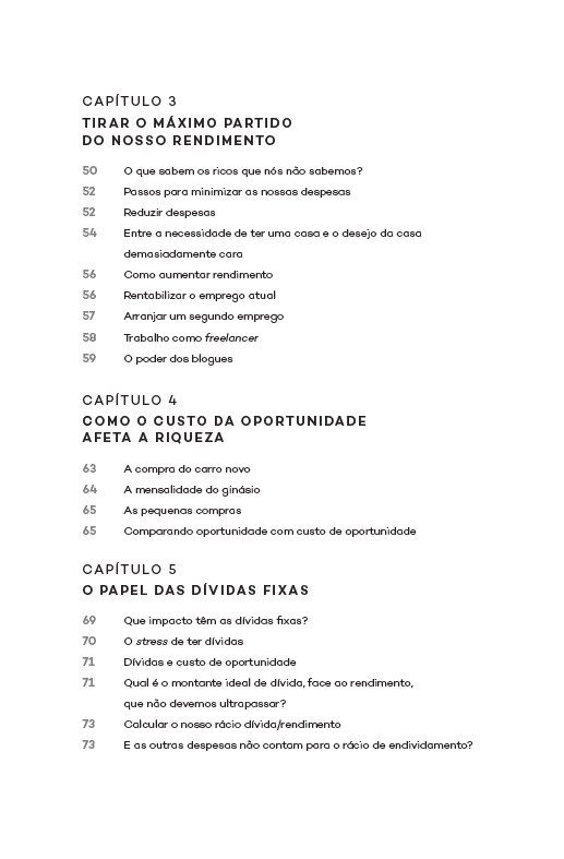 Este livro é um guia prático que o apoia em todas as vertentes no caminho para a independência financeira e, porque não, no seu plano de reforma, desde o diagnóstico das suas finanças pessoais, passando por um conjunto de estratégias para adaptar o seu orçamento mensal ao objetivo da poupança e, finalmente, como acelerar o seu crescimento através do investimento.