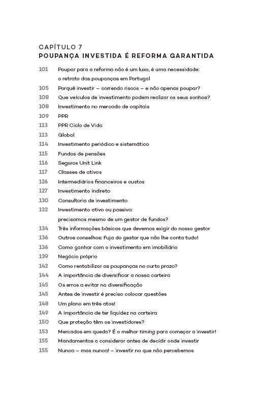 O objetivo é que estas páginas sejam também um contributo para uma melhor perceção do papel essencial que o investimento desempenha nas nossas poupanças, desmistificar alguns conceitos e mitos, bem como despertar a consciência para uma gestão criteriosa das nossas despesas.