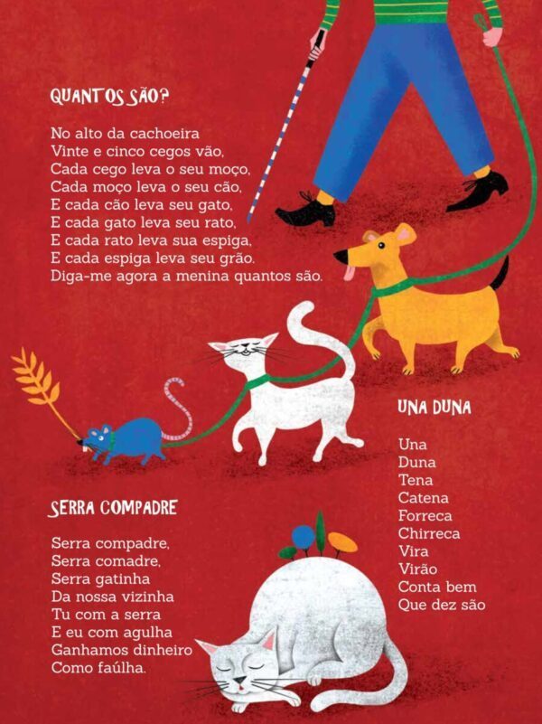 Brincar com a nossa língua (embora ela seja muito traiçoeira) é sempre um prazer. Luísa Ducla Soares, uma apaixonada pela língua portuguesa, apresenta-nos uma seleção de rimas populares e cantilenas infantis, que vêm do tempo das nossas avós e, quem sabe, talvez venham ainda a ser “declamadas” pelos nossos netos.